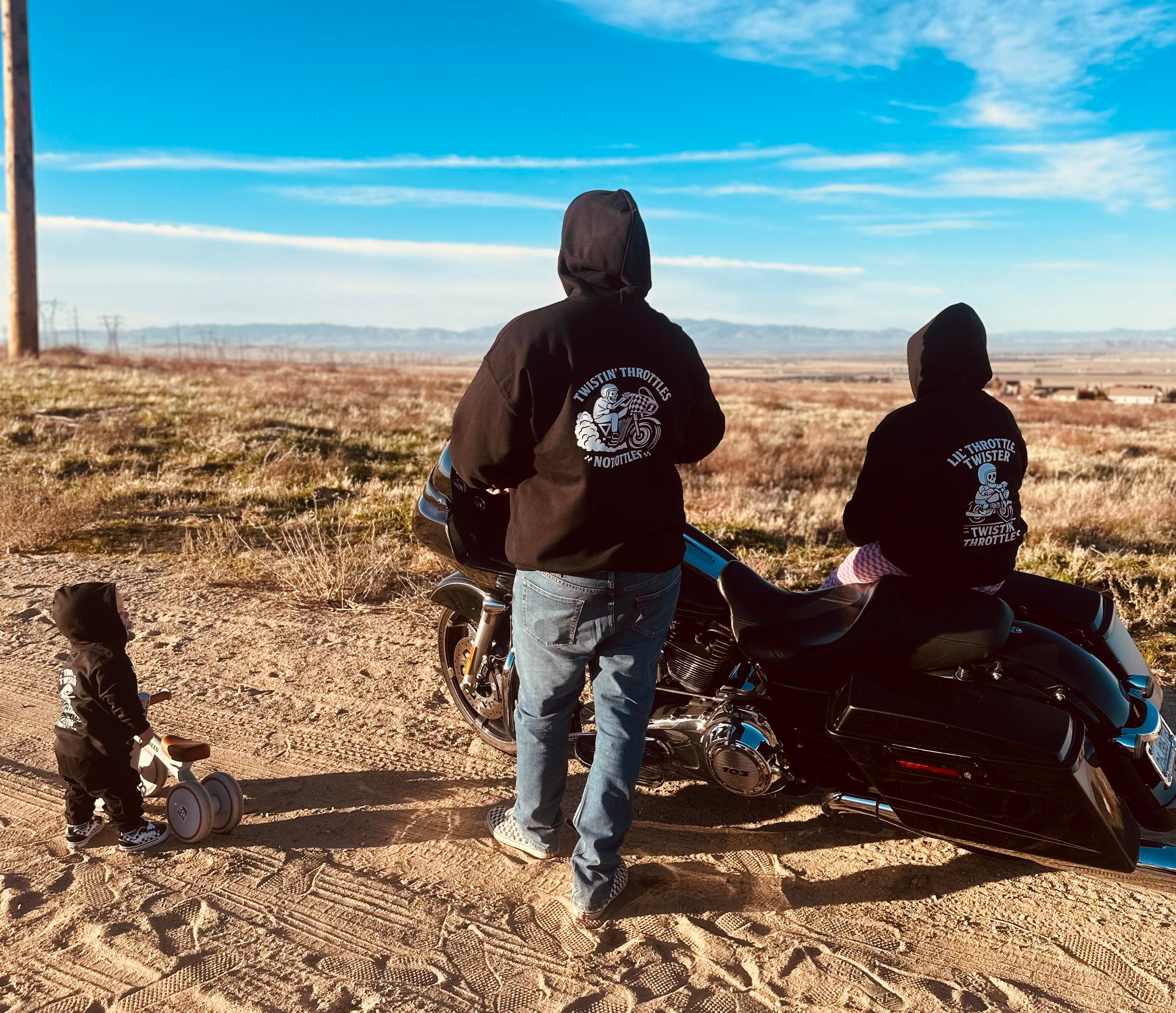 Twistin' Throttles is a motorcycle enthusiast clothing brand. I’m a lifelong motorcycle loving, God fearing, family first man. My wife and I are growing our family and wanted to start a business that would incorporate our 3 biggest loves BIKES, FAMILY AND GOD. This new business venture allows us to spend more time together as a family (expecting our baby girl in February) bringing together our creative ideas, love of bikes and each other. I’m a clean and sober member of the community and I want to have a brand that reflects my core morals and values. Our family appreciates all of your support! STAY TWISTED 🤘